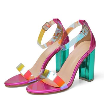 Sandalias de mujer transparentes rosas de verano, Sandalias de tacón fino transpirables con correa en el tobillo para mujer